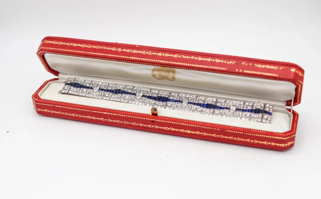Collateral: This Cartier bracelet is accompanied by the original antique designer’s presentation jewelry box.